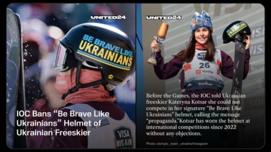 To nie jedyny przypadek, gdy MKOl ograniczał w działaniach ukraińskich sportowców. Przykładowo zakazał ukraińskiej narciarce startów w kasku z napisem „Be brave like Ukrainians” na igrzyskach we Włoszech. Według MKOl kask Kateryny Kotsar miał zawierać treści polityczne. Kotsar przekazała ukraińskim mediom, że usunęła napis i pozostawiła na kasku tylko flagę Ukrainy. Warto dodać, że zawodniczka startowała w tym kasku od kilku lat i do tej pory FIS nie robił jej żadnych problemów.